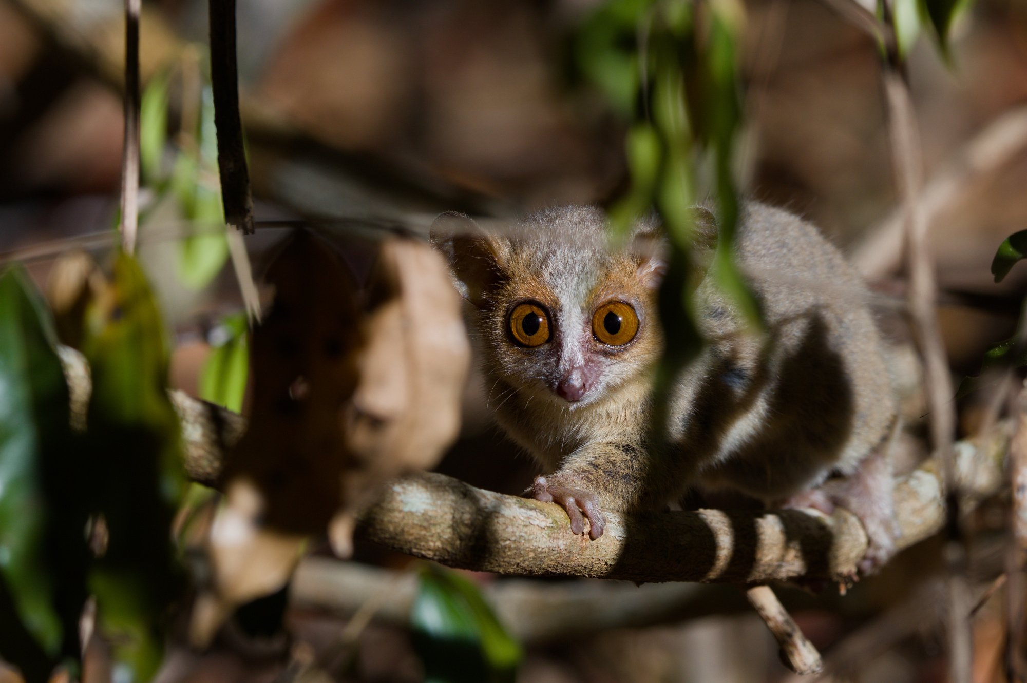 Maki trpasličí, Microcebus murinus (doufám). V oblasti NP Ankarafantsika se vyskytuje ještě endemický M. ravelobensis, druhy lze od sebe nejlépe poznat podle ocasu, murinus ho má tlustý.